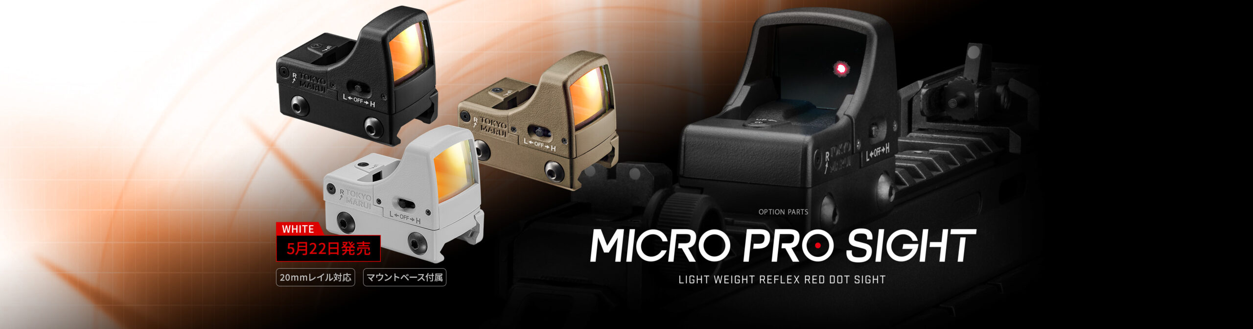 ガスブローバックハンドガンに対応した専用マウントベースや、高さの異なる20mmレイル対応のマウントベースなど、別売マウントベースが発売中です。